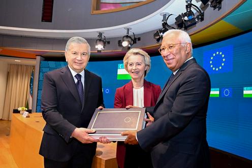 Uzbekistán y la Unión Europea han concluido un nuevo Acuerdo de Asociación y Cooperación Ampliada. La ceremonia de firma tuvo lugar el 24 de octubre en Bruselas con la presencia del líder de la república centroasiática Shavkat Mirziyoyev, el presidente del Consejo Europeo António Costa y la presidenta de la Comisión Europea Ursula von der Leyen.